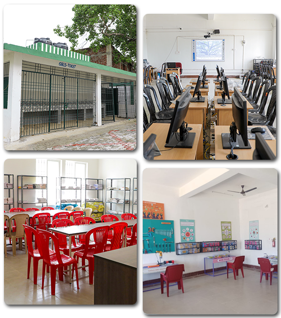 The school campus comprises separate buildings, including 20 well-maintained classrooms for instructional purposes, along with two smart classes. It also features an Administrative Building for non-teaching activities and a spacious hall for organizing cultural events. Additionally, there are separate rooms for the principal and teachers, and the school is enclosed by a sturdy boundary wall. To promote physical activities, there are both outdoor and indoor playgrounds available for students' use.
